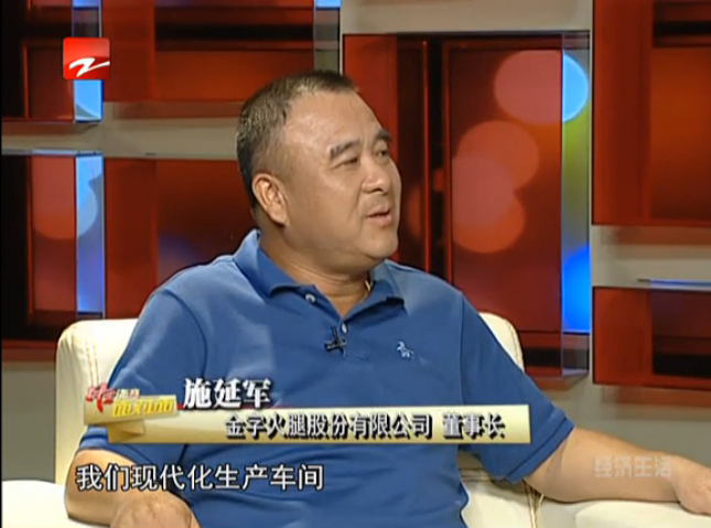 8月23日播出的《風云浙商面對面》收視率迎來一個新高,這期節(jié)目邀請到了一位特殊的嘉賓——金字火腿股份有限公司董事長施延軍。如何將“浙江三寶“之一的金華火腿產(chǎn)業(yè)做到上市,為何能在風靡中國的《舌尖上的中國》紀錄片中亮相,怎樣將火腿這一產(chǎn)業(yè)做到與歐洲一樣?施延軍董事長在節(jié)目進行中向觀眾逐一解答,并首次在電視媒體上回顧了金字20多年的發(fā)展歷程。